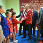 На спортивной площадке собрались как совсем юные, так и опытные борцы. Геннадий Андреевич тепло приветствовал участников состязаний, пообщался с ними.