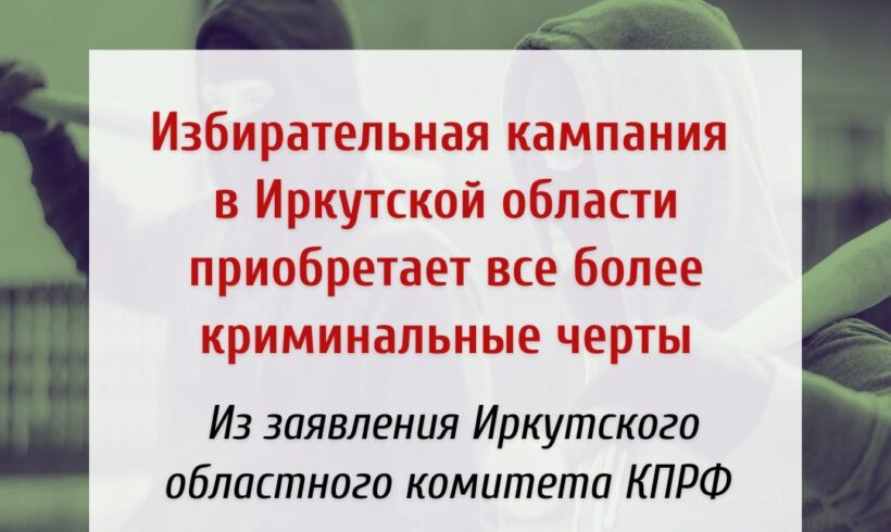Более того, избирательная кампания в Иркутской области приобретает все более криминальные черты. Вместо того, чтобы в рамках закона и порядка обеспечить конкурентные выборы, предоставив кандидатам равные права и возможности, по надуманным предлогам отстраняются сильные кандидаты от КПРФ, в ход идут запугивания, угрозы жизни и физические расправы.