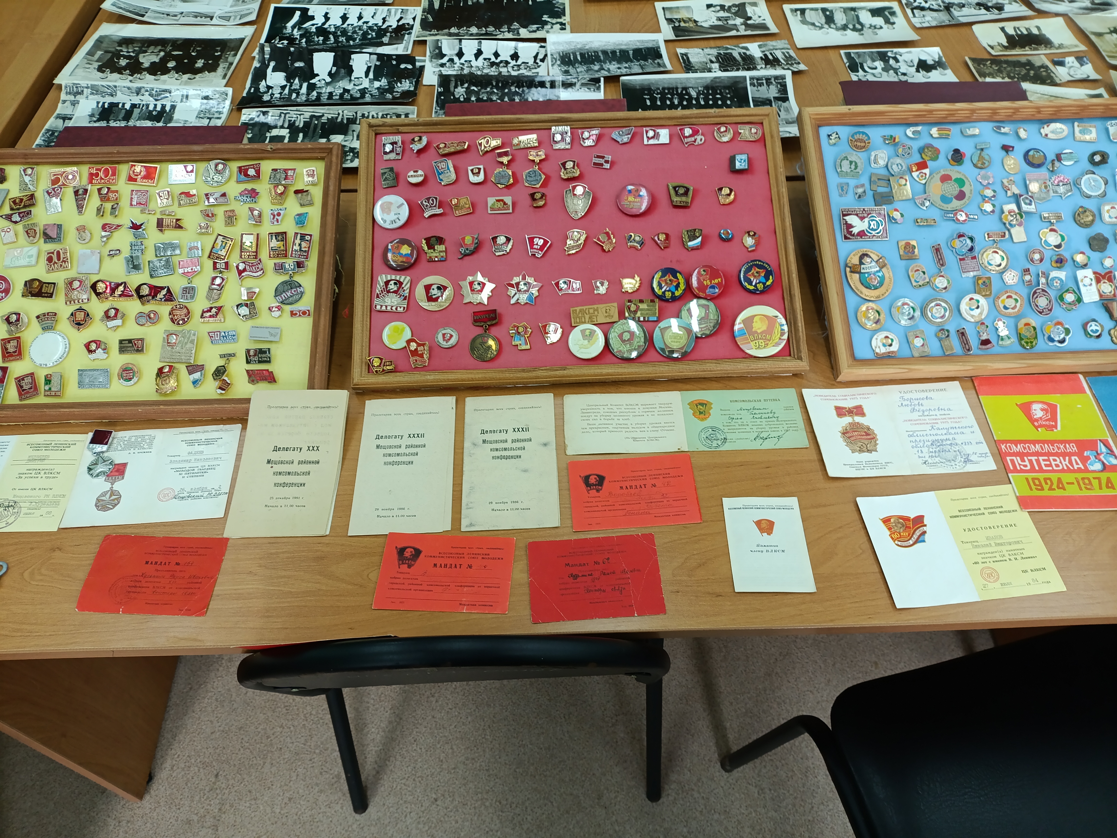 Учащиеся с интересом рассматривали значки и фотографии, на которых есть и жители ж/д станции Кудринская, где расположена школа.