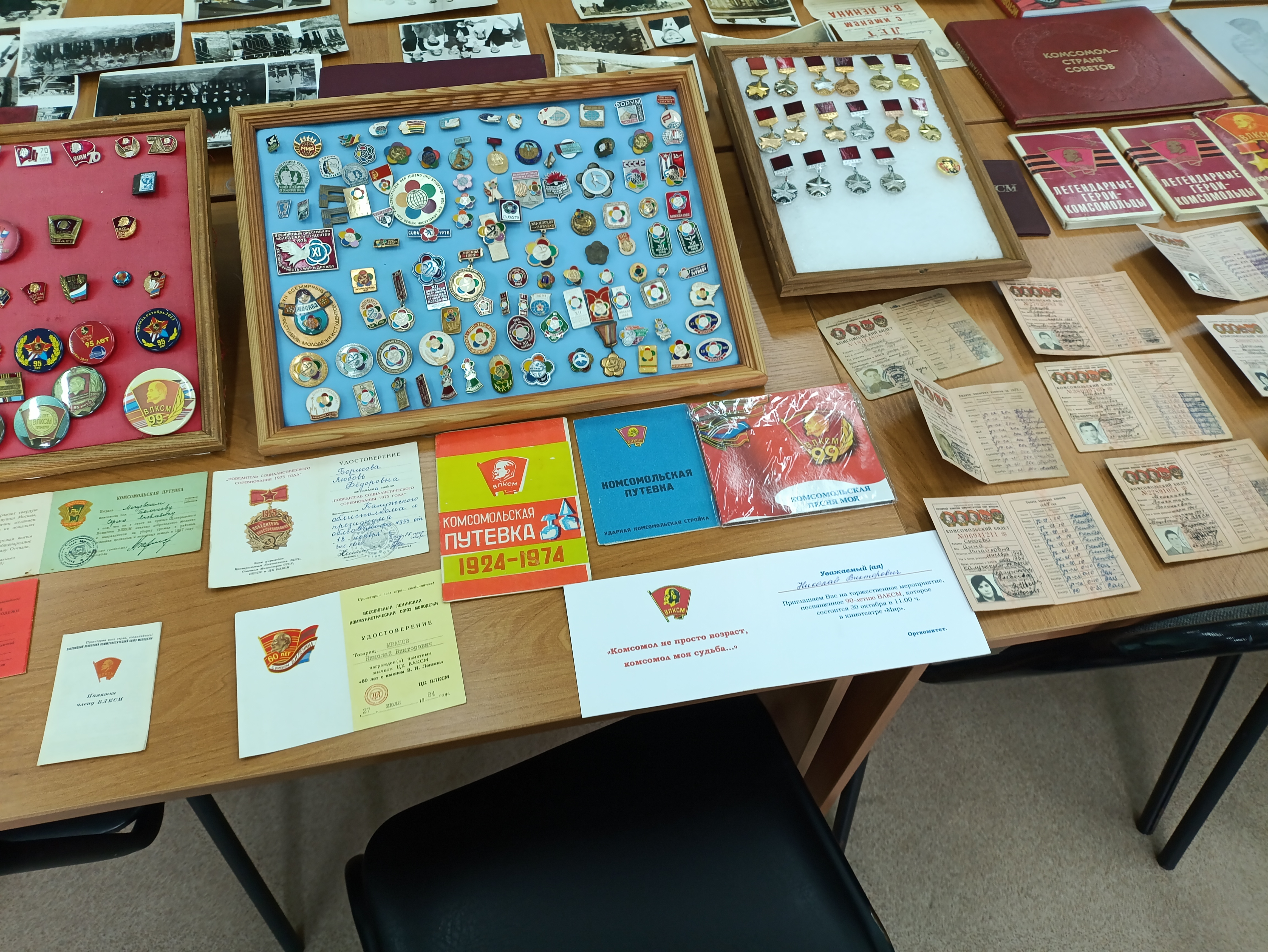Выступая перед учащимися, Н.В. Иванов рассказал об истории создания Всесоюзного Ленинского Коммунистического Союза Молодежи, подчеркнув, что ВЛКСМ была самой массовой организацией в мире и единственной, награжденной шестью орденами Родины. Используя экспонаты выставки – комсомольские билеты, награды, значки – он рассказал о роли комсомола в истории страны, в подъеме экономики Советского Союза, об участии молодежи в защите социалистической Родины.