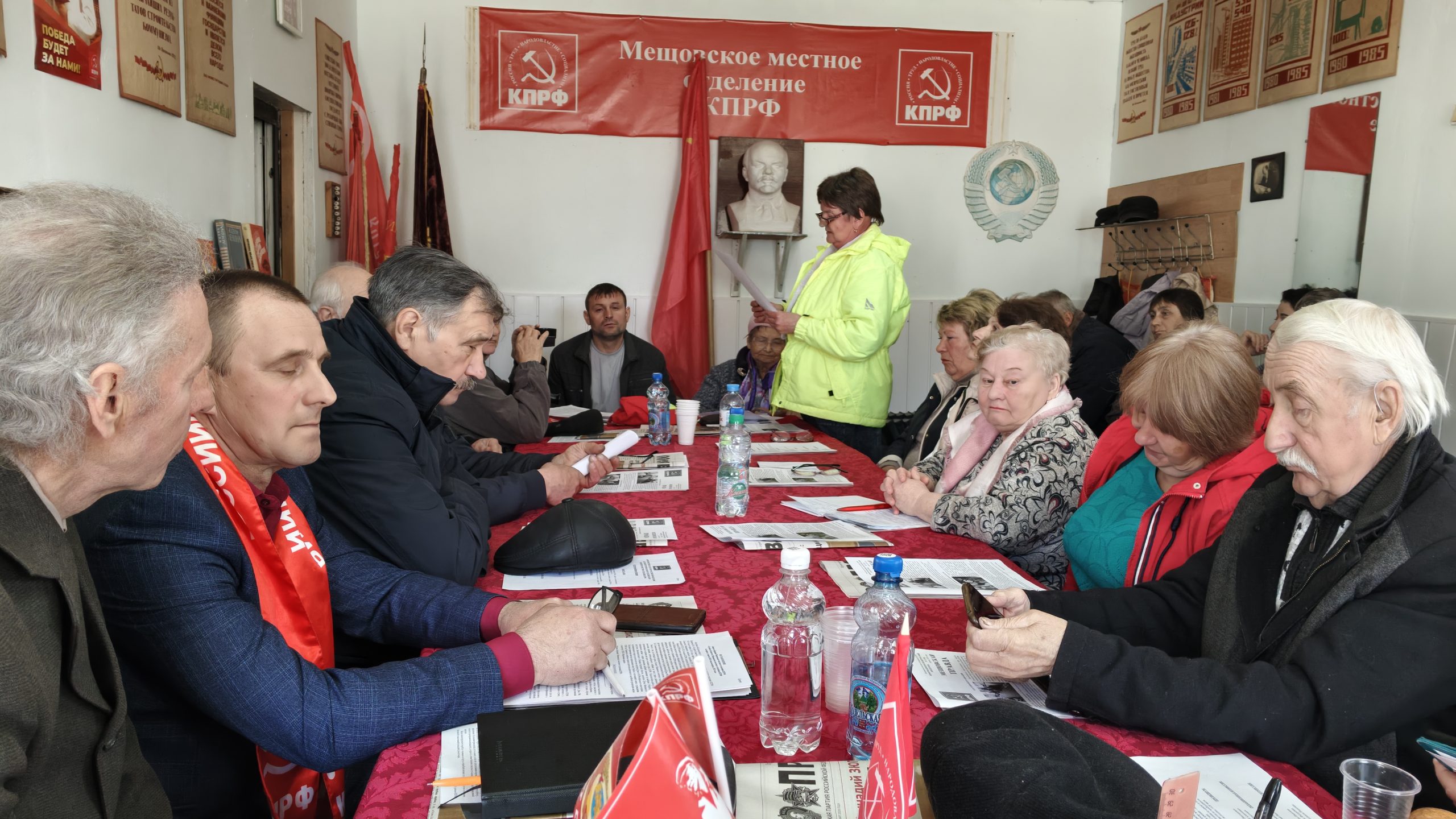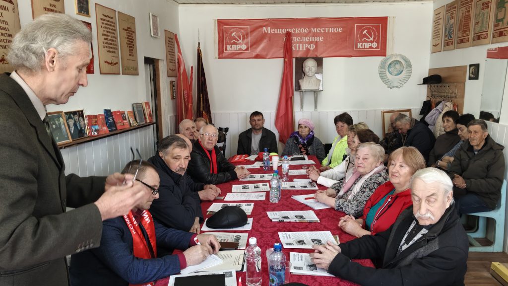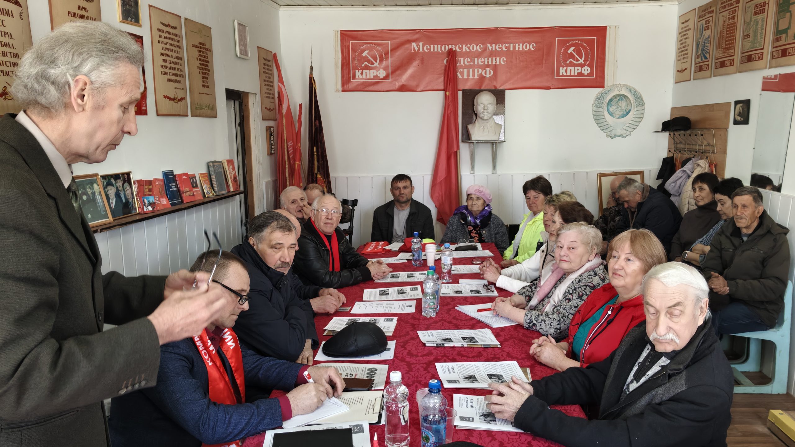 В соответствии с Постановлением 22 апреля состоялось отчётно-выборное собрание Мещовского местного отделения КПРФ. На собрание из 25 членов КПРФ, стоящих на учете в партийной организации на момент проведения собрания, присутствовал 21 человек. В работе собрания принял участие секретарь Калужского обкома КПРФ В.Е. Ханси.
